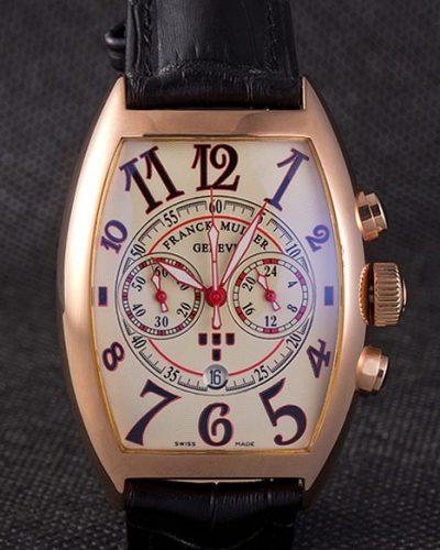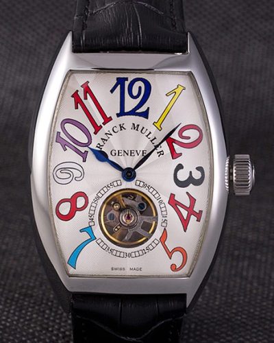 Franck Muller Casablanca Black Croco Leather Strap White Dial 80280