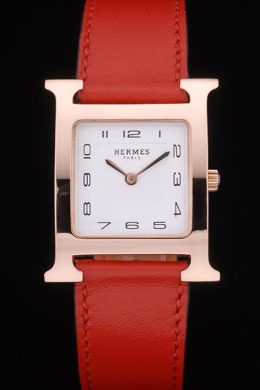 • Hermes Heure H Rose Gold Diamond Encrusted Bezel Tan Leather Strap White Dial 80236 313.20$
