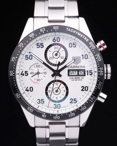 Tag Heuer Carrera Tachymeter Bezel White Dial Stainless Steel Strap