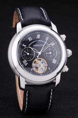 Bracelet: Heat embossed Audemars Piguet Replica black crocodile leather strap with Audemars Piguet Replica engraved stainless steel fold-in clasp