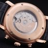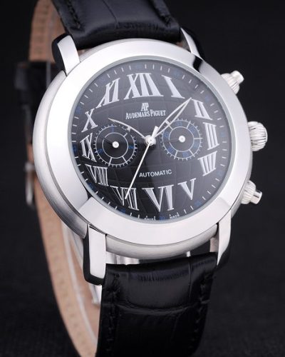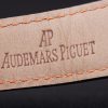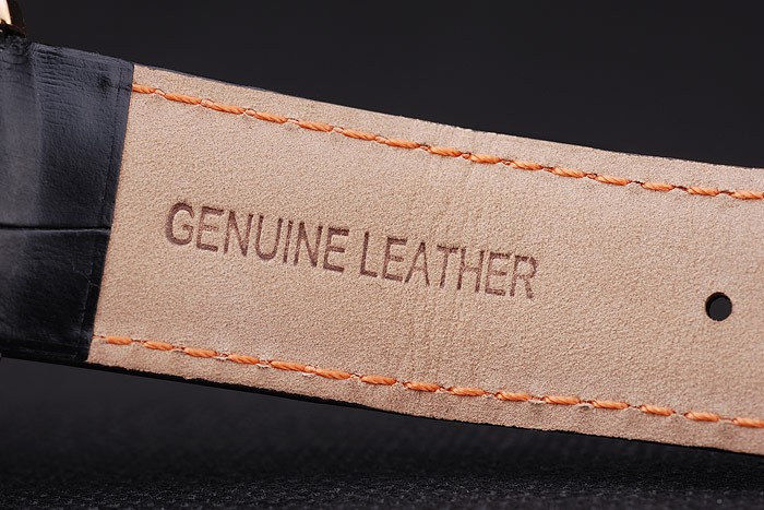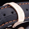 Bracelet: Black crocodile leather strap with orange stitching and heat embossed Audemars Piguet Replica name and logo and an Audemars Piguet Replica inscribed 18k rose-gold plated flip-over hook clasp