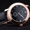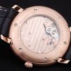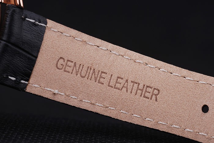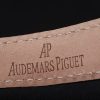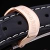 Bracelet: Black crocodile leather strap with white thread stitching and heat embossed Audemars Piguet Replica name and logo and an Audemars Piguet Replica inscribed 18k rose-gold plated flip-over hook clasp
