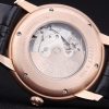 Back: 18k rose-gold plated screwed down back with a mechanics revealing transparent center and Jules Audemars Tourbillon engravings