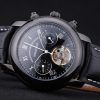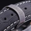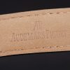 Bracelet: Black crocodile leather strap with white thread stitching and heat embossed Audemars Piguet Replica name and logo and an Audemars Piguet Replica inscribed ion-plated flip-over hook clasp