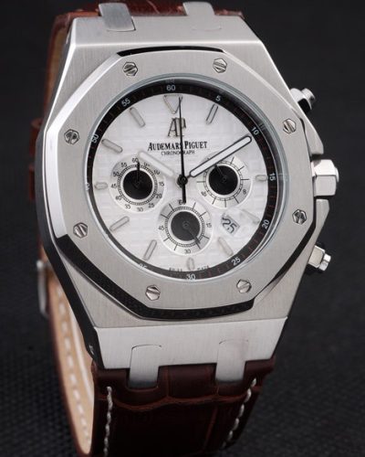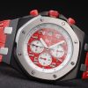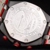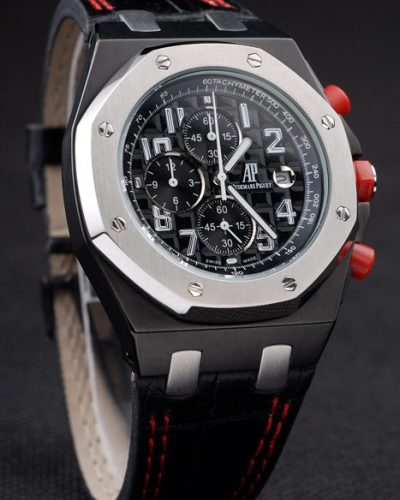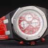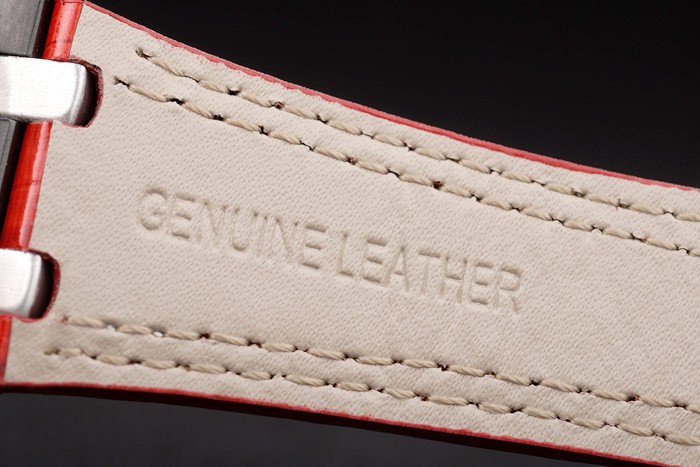 Back: Brushed stainless steel screwed down back with Audemars Piguet Replica logo and engravings Gender: UominiMovement: Quarzo (Batteria) Quality: Giapponese Miyota Color: Rosso Case: Ion-plated stainless steel case Bracelet: Heat embossed Audemars Piguet Replica red crocodile leather strap with double white stitching and Audemars Piguet Replica engraved ion-plated fold-in clasp Bracelet Length: 220 x 25 mm Bezel: Brushed stainless steel screwed down bezel Band Type: Pelle Diameter: 48 x 40 mm Chronograph: Si Watch Clasp: Flip Clasp Glass: Sapphire Crystal Crown: Red rubber hexagonal crown with the initials AP on stainless steel stud plus a red round rubber crown on either side of it Case Thickness: 16 mm