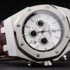 Back: Brushed stainless steel screwed down back with Audemars Piguet Replica logo and engravings Gender: UominiMovement: Quarzo (Batteria) Quality: Giapponese Miyota Color: Marrone Case: Brushed stainless steel case Bracelet: Heat embossed Audemars Piguet Replica brown crocodile leather strap with white stitching and Audemars Piguet Replica engraved rose-gold plated fold-in clasp Bracelet Length: 235 x 28 mm Bezel: Brushed stainless steel screwed down bezel Band Type: Pelle Diameter: 45 x 41 mm Chronograph: Si Watch Clasp: Flip Clasp Glass: Sapphire Crystal Crown: Stainless steel protected hexagonal crown with the initials AP and a smaller crown on either side of it Case Thickness: 15 mm
