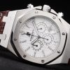 Bracelet: Heat embossed Audemars Piguet Replica brown crocodile leather strap with double white stitching and Audemars Piguet Replica engraved stainless steel fold-in clasp
