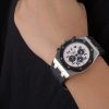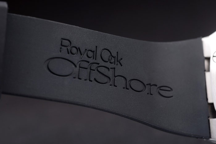 Bracelet: Audemars Piguet Replica Royal Oak Offshore embossed black rubber strap with Audemars Piguet Replica engraved brushed stainless steel fold-in clasp