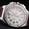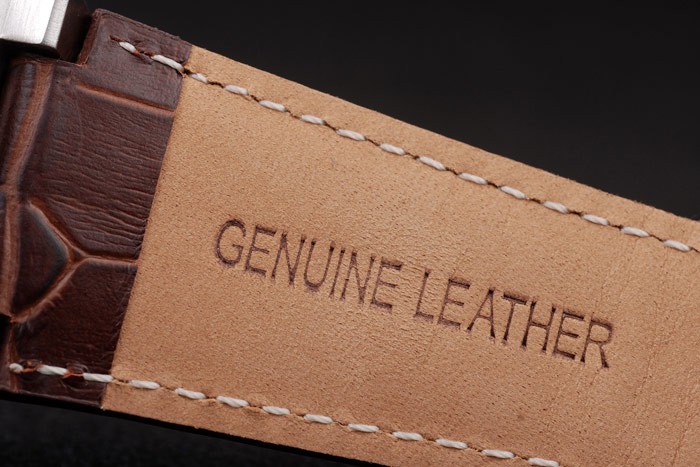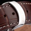 Bracelet: Heat embossed Audemars Piguet Replica brown crocodile leather strap with white stitching and Audemars Piguet Replica engraved stainless steel fold-in clasp