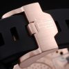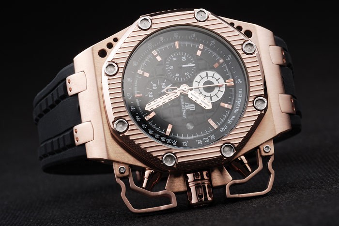 Bracelet: Audemars Piguet Replica Royal Oak Offshore embossed black rubber strap with Audemars Piguet Replica engraved rose-gold fold-in clasp