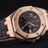 Back: Screwed down rose-gold plated stainless steel back with Royal Oak Offshore engraving Gender: DonneMovement: Quarzo (Batteria) Quality: Giapponese Miyota Color: Nero Case: 18k rose gold plated stainless steel case Bracelet: Black crocodile leather strap with white thread stitching and heat embossed Audemars Piguet Replica name and logo and an Audemars Piguet Replica inscribed rose-gold plated flip-over hook clasp Bracelet Length: 247 x 22 mm Bezel: 18k rose-gold plated hexagonal screwed down bezel Band Type: Pelle di coccodrillo Diameter: 38 x 29 mm Watch Clasp: Flip Clasp Glass: Sapphire Crystal Crown: Rose-gold plated Audemars Piguet Replica logo engraved ion-plated cutwork crown with two small ion-plated crowns on either side of it Case Thickness: 10 mm