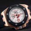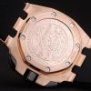 Back: Rose-gold plated screwed down back with Royal Oak Offshore Alinghi engraving and logo Gender: UominiMovement: Quarzo (Batteria) Quality: Giapponese Miyota Color: Nero Case: 18k rose gold plated stainless steel case Bracelet: Black rubber strap with heat embossed Audemars Piguet Replica Royal Oak Offshore stamp and an Audemars Piguet Replica inscribed ion-plated hook-buckle clasp Bracelet Length: 220 x 28 mm Bezel: Ion-plated hexagonal screwed down bezel Diameter: 45 x 38 mm Watch Clasp: Buckle Glass: Sapphire Crystal Crown: Audemars Piguet Replica logo engraved ion-plated cutwork crown set between a protective wall with two rectangular crowns on either side of it Case Thickness: 16 mm