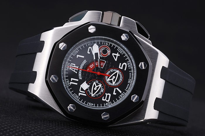 Back: Polished stainless steel screwed down back with Royal Oak Offshore Alinghi engraving and logo Gender: UominiMovement: Quarzo (Batteria) Quality: Giapponese Miyota Color: Nero Case: Brushed Stainless Steel Case Bracelet: Black rubber strap with heat embossed Audemars Piguet Replica Royal Oak Offshore stamp and an Audemars Piguet Replica inscribed ion-plated hook-buckle clasp Bracelet Length: 220 x 28 mm Bezel: Ion-plated hexagonal screwed down bezel Diameter: 45 x 38 mm Watch Clasp: Buckle Glass: Sapphire Crystal Crown: Audemars Piguet Replica logo engraved ion-plated cutwork crown set between a protective wall with two rectangular crowns on either side of it Case Thickness: 16 mm