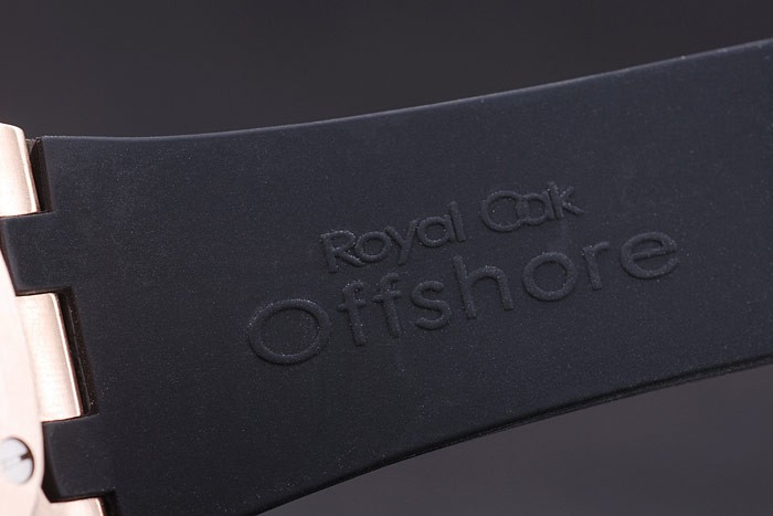 Bracelet: Black rubber strap with heat embossed Audemars Piguet Replica Royal Oak Offshore stamp and an Audemars Piguet Replica inscribed ion-plated hook-buckle clasp