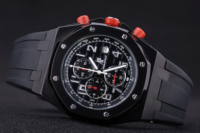 Crown: Stainless steel Audemars Piguet Replica logo engraved red enamel cutwork crown with two smaller crowns on either side of it