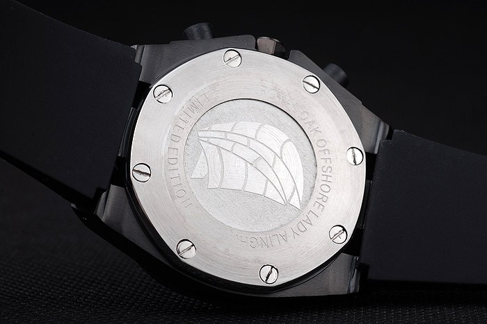 Back: Brushed stainless steel screwed down back with Audemars Piguet Replica logo and engravings