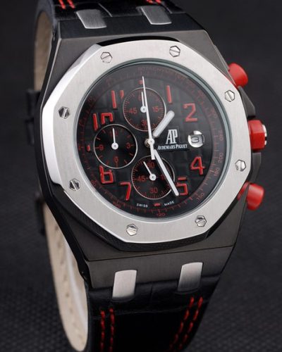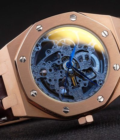 Back: Stainless steel screwed down back with a mechanics revealing transparent center and Royal Oak engraving Gender: UominiMovement: Cinetico (Automatico) Quality: Giapponese Miyota Color: Marrone Case: Brushed Stainless Steel Case Bracelet: Brown crocodile leather strap with white thread stitching and heat embossed Audemars Piguet Replica name and logo and an Audemars Piguet Replica inscribed stainless steel flip-over hook clasp Bracelet Length: 240 x 25 mm Bezel: Crystal studded polished stainless steel screwed down bezel Band Type: Pelle di coccodrillo Diameter: 47 x 39 mm Watch Clasp: Flip Clasp Glass: Sapphire Crystal Crown: Stainless steel cutwork crown with Audemars Piguet Replica logo Case Thickness: 11 mm