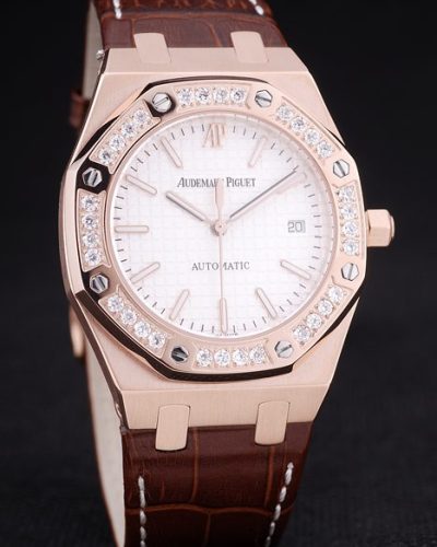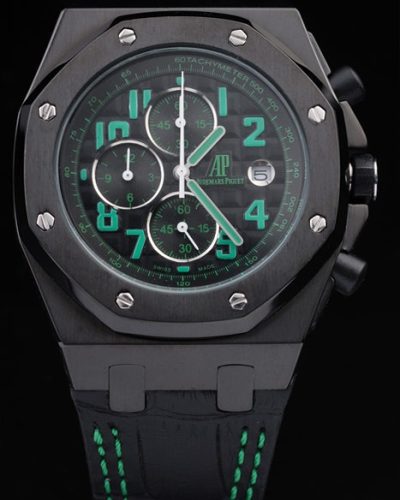Back: Stainless steel screwed down back with a mechanics revealing transparent center and Royal Oak engraving Gender: UominiMovement: Cinetico (Automatico) Quality: Giapponese Miyota Color: Nero Case: Brushed Stainless Steel Case Bracelet: Black crocodile leather strap with white thread stitching and heat embossed Audemars Piguet Replica name and logo and an Audemars Piguet Replica inscribed stainless steel flip-over hook clasp Bracelet Length: 240 x 25 mm Bezel: Crystal studded polished stainless steel screwed down bezel Band Type: Pelle di coccodrillo Diameter: 47 x 39 mm Watch Clasp: Flip Clasp Glass: Sapphire Crystal Crown: Stainless steel cutwork crown with Audemars Piguet Replica logo Case Thickness: 11 mm