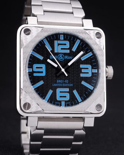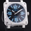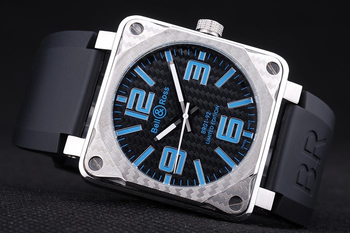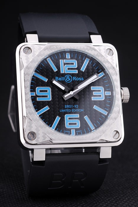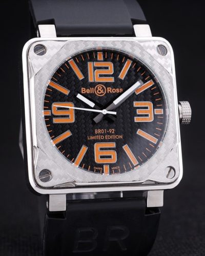 Back: Stainless steel screwed down back with Bell & Ross Replica inscriptions Gender: UominiMovement: Cinetico (Automatico) Quality: Giapponese Miyota Color: Nero Case: Brushed Stainless Steel Case Bracelet: Bell & Ross Replica logo and product code embossed black rubber strap with stainless steel hook-buckle clasp Bracelet Length: 215 x 34 mm Bezel: Brushed stainless steel screwed down bezel Diameter: 50 x 44 mm Watch Clasp: Buckle Glass: Sapphire Crystal Crown: Stainless steel cutwork crown with Bell & Ross Replica logo Case Thickness: 12.5 mm