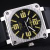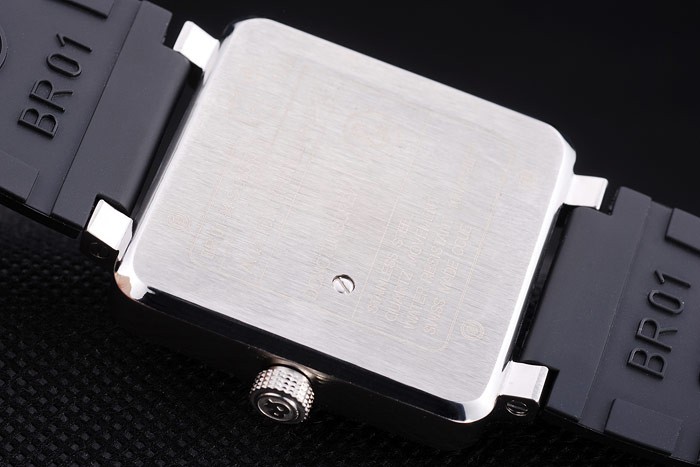 Back: Stainless steel screwed down back with Bell & Ross Replica inscriptions Gender: UominiMovement: Cinetico (Automatico) Quality: Giapponese Miyota Color: Nero Case: Brushed Stainless Steel Case Bracelet: Bell & Ross Replica logo and product code embossed black rubber strap with stainless steel hook-buckle clasp Bracelet Length: 215 x 34 mm Bezel: Brushed stainless steel screwed down bezel Diameter: 50 x 44 mm Watch Clasp: Buckle Glass: Sapphire Crystal Crown: Stainless steel cutwork crown with Bell & Ross Replica logo Case Thickness: 12.5 mm