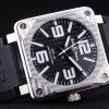 Back: Stainless steel screwed down back with Bell & Ross Replica inscriptions Gender: UominiMovement: Cinetico (Automatico) Quality: Giapponese Miyota Color: Nero Case: Brushed Stainless Steel Case Bracelet: Bell & Ross Replica logo and product code embossed black rubber strap with stainless steel hook-buckle clasp Bracelet Length: 215 x 34 mm Bezel: Brushed stainless steel screwed down bezel Diameter: 50 x 44 mm Watch Clasp: Buckle Glass: Sapphire Crystal Crown: Stainless steel cutwork crown with Bell & Ross Replica logo Case Thickness: 12.5 mm