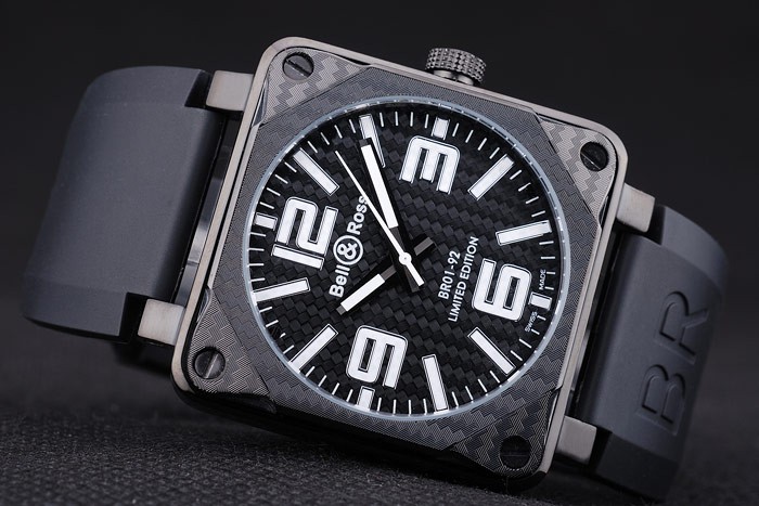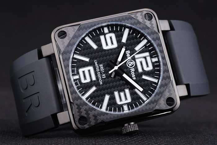 Back: Ion-plated stainless steel screwed down back with Bell & Ross Replica inscriptions Gender: UominiMovement: Cinetico (Automatico) Quality: Giapponese Miyota Color: Nero Case: Ion-plated stainless steel case Bracelet: Bell & Ross Replica logo and product code embossed black rubber strap with ion-plated hook-buckle clasp Bracelet Length: 215 x 34 mm Bezel: Ion-plated screwed down bezel Diameter: 50 x 44 mm Watch Clasp: Buckle Glass: Sapphire Crystal Crown: Ion-plated cutwork crown with Bell & Ross Replica logo Case Thickness: 12.5 mm
