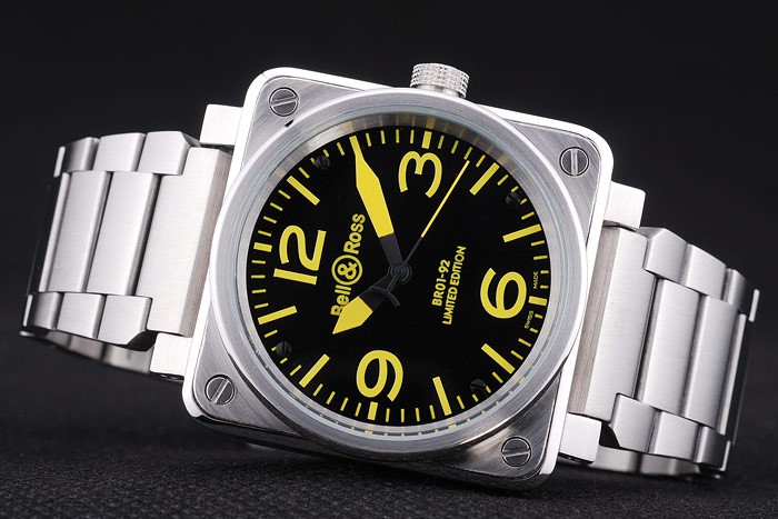 Back: Stainless steel screwed down back with Bell & Ross Replica inscriptions Gender: UominiMovement: Cinetico (Automatico) Quality: Giapponese Miyota Case: Brushed Stainless Steel Case Bracelet: Brushed stainless steel link bracelet with fold-in push release clasp Bracelet Length: 205 x 28 mm Bezel: Brushed stainless steel screwed down bezel Diameter: 50 x 44 mm Watch Clasp: Security Clasp Glass: Sapphire Crystal Crown: Stainless steel cutwork crown with Bell & Ross Replica logo Case Thickness: 12.5 mm