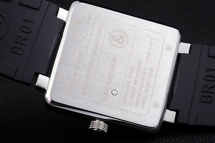 Back: Brushed stainless steel screwed down back with Bell & Ross Replica inscriptions
