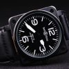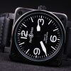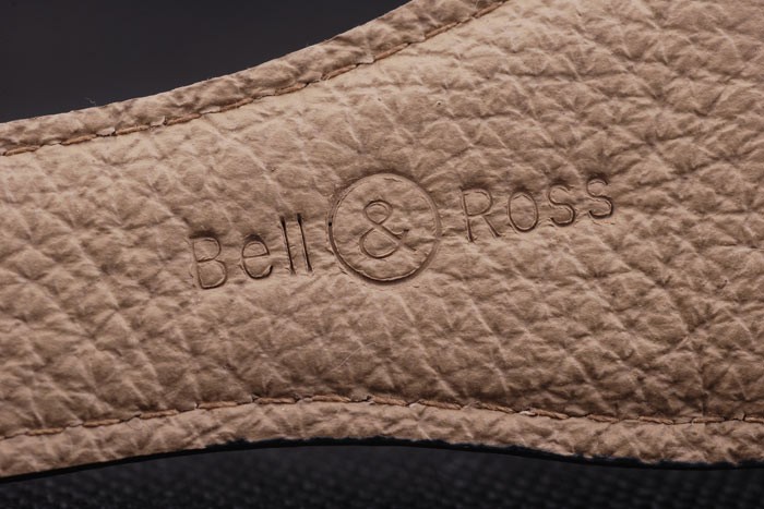 Bracelet: Black leather strap with heat embossed Bell & Ross Replica stamp and BR engraved ion-plated hook-buckle clasp