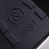 Bracelet: Black rubber strap with heat embossed logo, model number and product code and BR engraved brushed stainless steel hook-buckle clasp