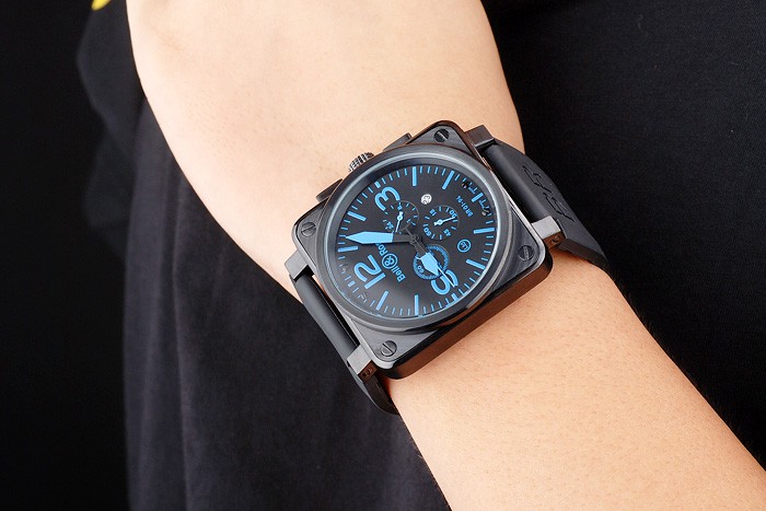 Crown: Ion-plated cutwork crown with Bell & Ross Replica logo and a square crown on either side of the main crown