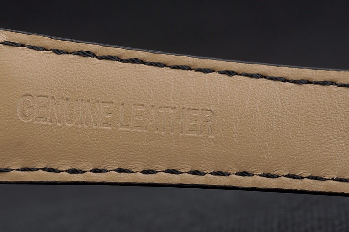 Bracelet: Breguet Replica heat embossed black crocodile leather strap with Brequet engraved polished stainless steel fold-in hook-buckle clasp