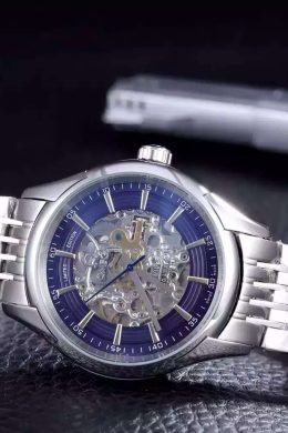 Back: Polished stainless steel screwed down back with engraved rose-gold center and a small transparent window revealing the inner mechanics Gender: UominiMovement: Cinetico (Automatico) Quality: Giapponese Miyota Case: Polished stainless steel case Bracelet: Breguet Replica heat embossed brown crocodile leather strap with Brequet engraved polished stainless steel fold-in hook-buckle clasp Bracelet Length: 205 x 22 mm Bezel: Polished stainless steel bezel Diameter: 51 x 43 mm Glass: Sapphire Crystal Crown: Polished stainless steel cutwork crown with Breguet Replica logo Case Thickness: 14 mm