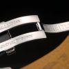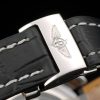 Bracelet: Breitling Replica heat embossed black crocodile leather strap with white thread stitching and logo engraved polished stainless steel deployment clasp