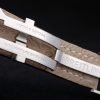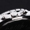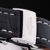 Bracelet: Black leather in a crocodile pattern, stitched in heavy white cotton and fastened with a