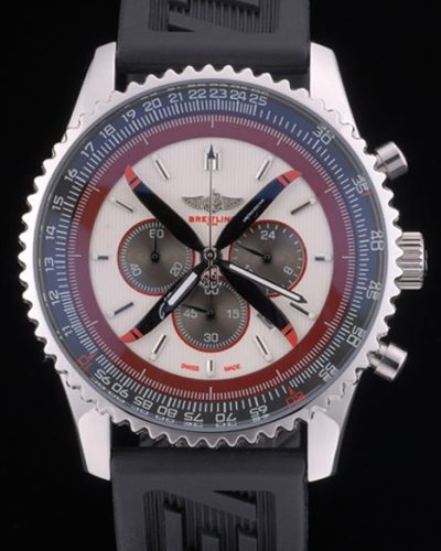 Back: Brushed stainless steel snap-in back with Breitling Replica engravings Gender: UominiMovement: Quarzo (Batteria) Quality: Giapponese Miyota Case: Polished stainless steel case Bracelet: Black rubber strap with logo engraved stainless steel hook-buckle clasp Bracelet Length: 190 x 24 mm Bezel: Polished stainless steel cutwork bezel with tachymeter Band Type: Gomma Diameter: 54 x 47 mm Watch Clasp: Buckle Glass: Sapphire Crystal Crown: Polished stainless steel cutwork crown with Breitling Replica logo and a small push-button crown on either side of it Case Thickness: 25 mm
