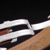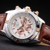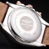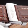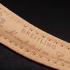 Bracelet: Brown crocodile leather strap with patent white stitching and heat embossed Breitling Replica engravings and engraved stainless steel fold in clasp with Breitling Replica logo on top