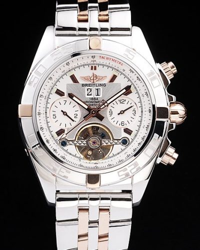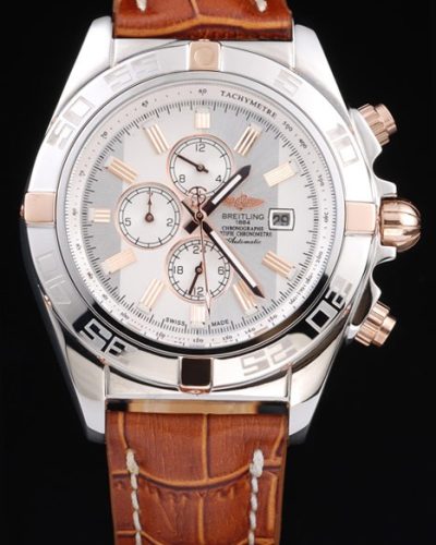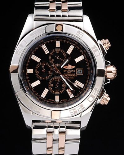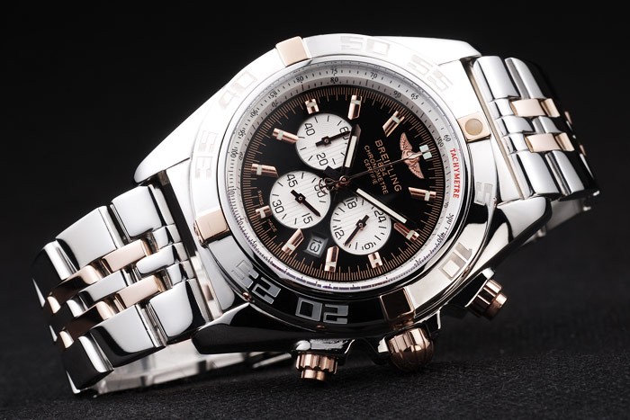 Crown: 18k rose-gold plated stainless steel cutwork crown with Breitling Replica logo and two smaller crowns on either side of it