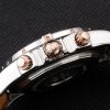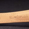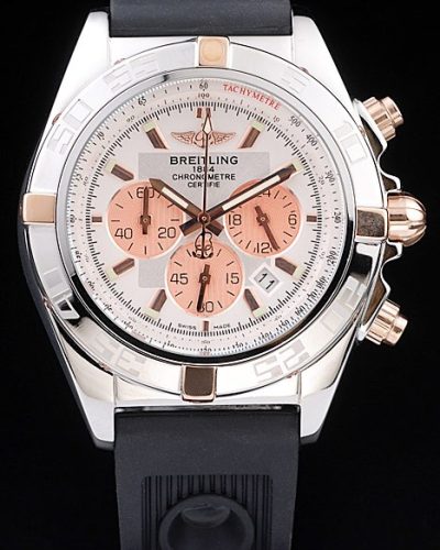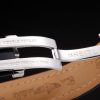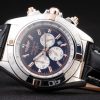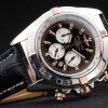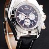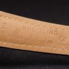 Bracelet: Black crocodile leather strap with patent white stitching and heat embossed Breitling Replica engravings and engraved stainless steel fold in clasp with Breitling Replica logo on top