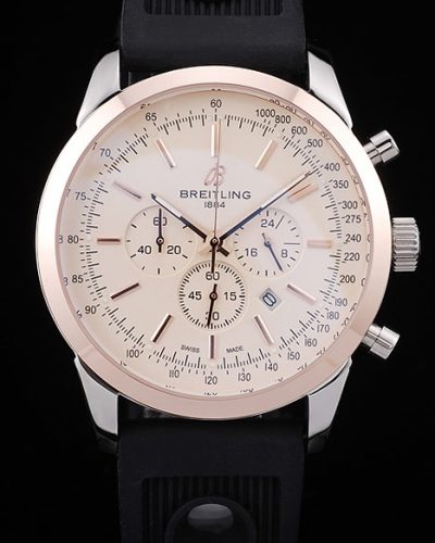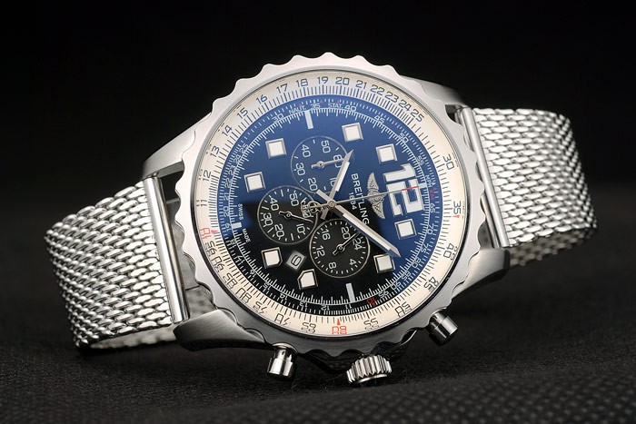 Crown: Polished stainless steel cutwork crown with Breitling Replica logo and two small round push-button crowns on either side of it