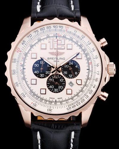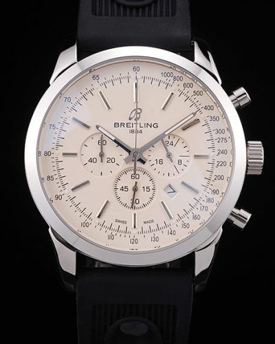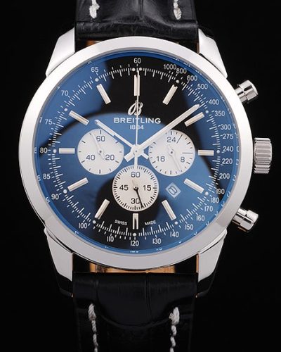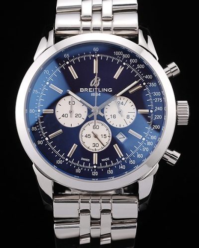 Crown: Polished stainless steel cutwork crown with Breitling Replica logo and two small round push-button crowns on either side of it
