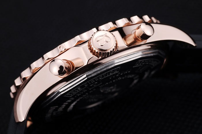 Crown: 18k rose-gold plated cutwork crown with Breitling Replica logo and two smaller stainless steel push-button crowns on either side of it