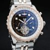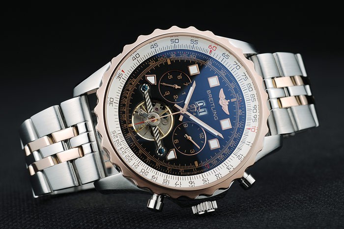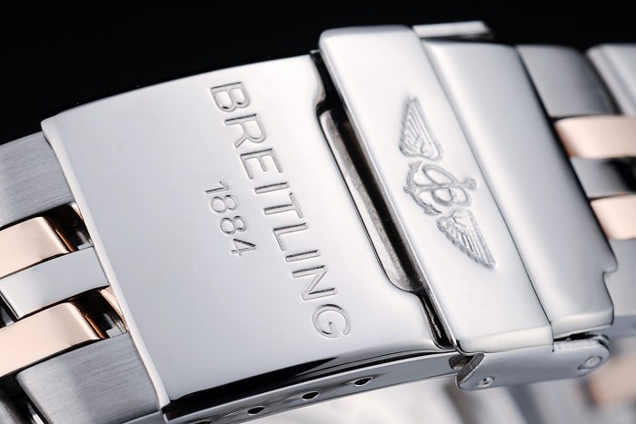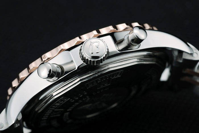 Crown: Polished stainless steel cutwork crown with Breitling Replica logo and two smaller stainless steel push-button crowns on either side of it