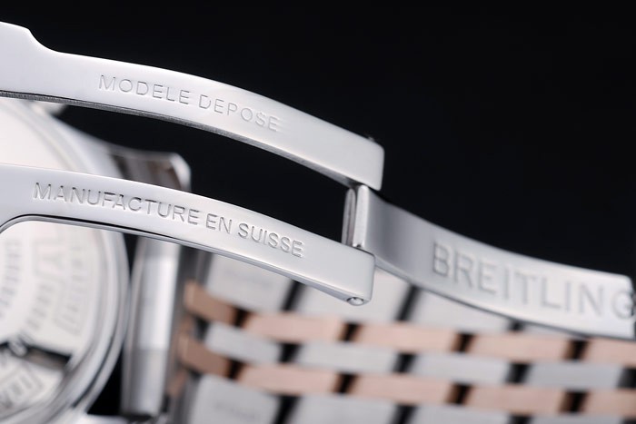 Bracelet: Polished stainless steel and rose-gold plated link bracelet with Breitling Replica 1884 and logo engraved fold-in push-button clasp