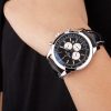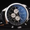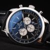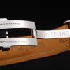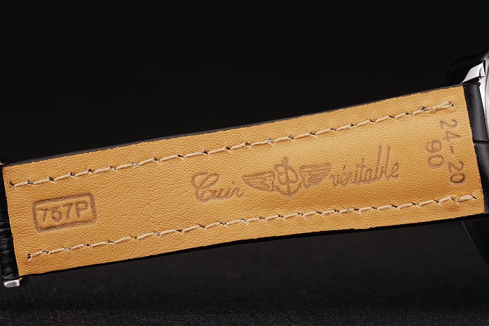 Bracelet: Heat embossed Breitling Replica black crocodile leather strap with white thread stitching and a Breitling Replica logo engraved fold-in stainless steel clasp