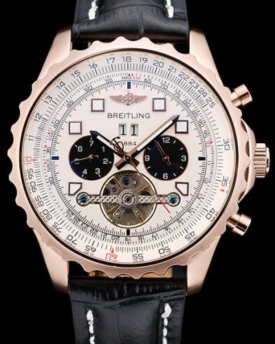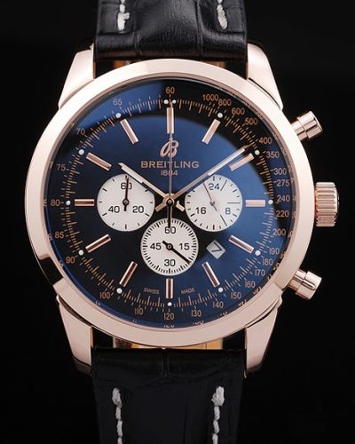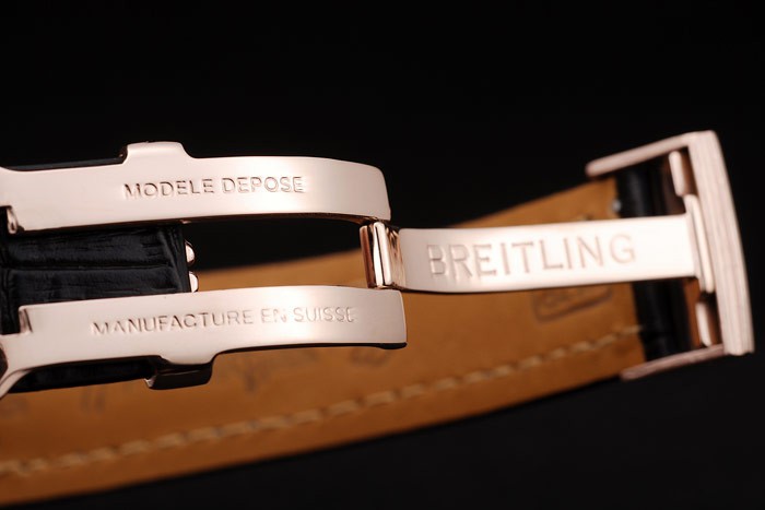 Back: Stainless steel snap-in back with Breitling Replica inscription Gender: UominiMovement: Quarzo (Batteria) Quality: Giapponese Miyota Color: Nero Case: 18k rose-gold plated case Bracelet: Heat embossed Breitling Replica black crocodile leather strap with white thread stitching and a Breitling Replica logo engraved fold-in rose-gold plated clasp Bracelet Length: 210 x 24 mm Bezel: 18k rose-gold plated bezel Band Type: Pelle di coccodrillo Diameter: 55 x 45 mm Watch Clasp: Flip Clasp Crown: Bell & Ross Replica logo engraved 18k rose-gold plated cutwork crown with two small round push-button crowns on either side of it Case Thickness: 15 mm