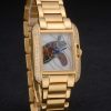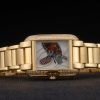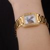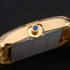 Back: Brushed stainless steel screwed down back with Cartier Replica engravings Gender: DonneMovement: Quarzo (Batteria) Quality: Giapponese Miyota Case: 18k yellow gold plated stainless steel case Bracelet: 18k yellow gold plated stainless steel link bracelet with hidden clasp Bracelet Length: 185 x 16 mm Bezel: White crystal stud 18k yellow gold plated bezel with niched in crown Diameter: 30 x 23 mm Glass: Sapphire Crystal Crown: Blue sapphire crystal stud 18k rose-gold plated cutwork crown niched into bezel Case Thickness: 8 mm