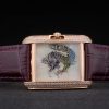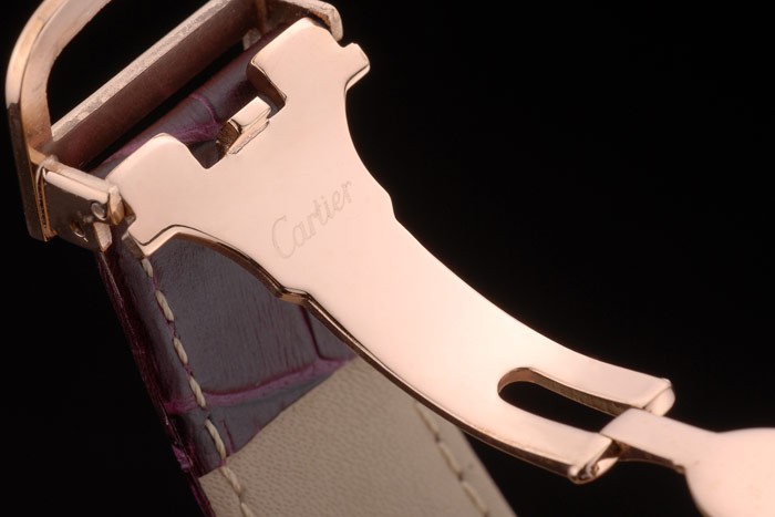 Bracelet: Cartier Replica heat embossed purple crocodile leather strap with 18k rose-gold plated fold-in buckle clasp