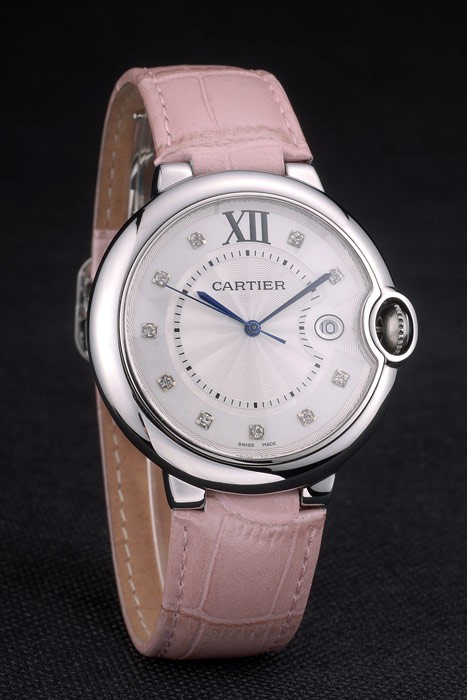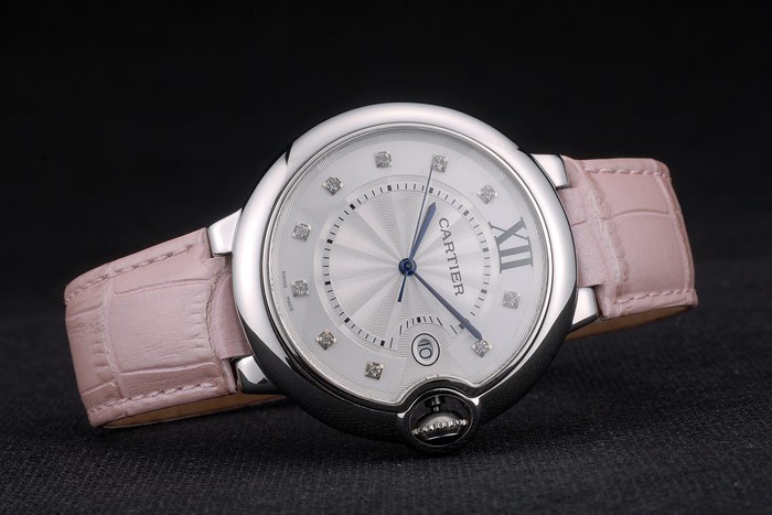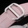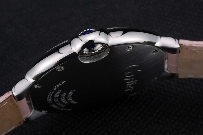 Back: Brushed stainless steel screwed down back with Cartier Replica engravings Gender: DonneMovement: Quarzo (Batteria) Quality: Svizzera ETA Case: Polished stainless steel case Bracelet: Cartier Replica heat embossed pink crocodile leather strap with polished stainless steel fold-in buckle clasp Bracelet Length: 195 x 20 mm Bezel: Polished stainless steel bezel with integrated crown Diameter: 45 x 42 mm Glass: Sapphire Crystal Crown: Sapphire crystal stud stainless steel cutwork crown encased in a niche cut out into the bezel Case Thickness: 12 mm