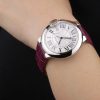 Back: Brushed stainless steel screwed down back with Cartier Replica engravings Gender: DonneMovement: Quarzo (Batteria) Quality: Svizzera ETA Case: Polished stainless steel case Bracelet: Cartier Replica heat embossed purple crocodile leather strap with polished stainless steel fold-in buckle clasp Bracelet Length: 190 x 18 mm Bezel: Polished stainless steel bezel with integrated crown Diameter: 40 x 38 mm Glass: Sapphire Crystal Crown: Sapphire crystal stud stainless steel cutwork crown encased in a niche cut out into the bezel Case Thickness: 1.5 mm